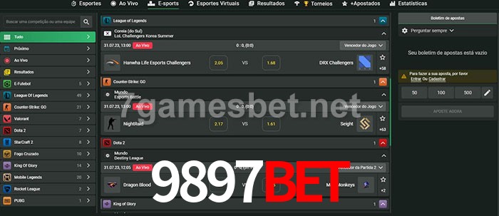 O 9897bet oferece uma grande seleção de opções de apostas em e-sports com probabilidades competitivas